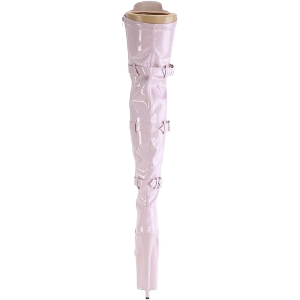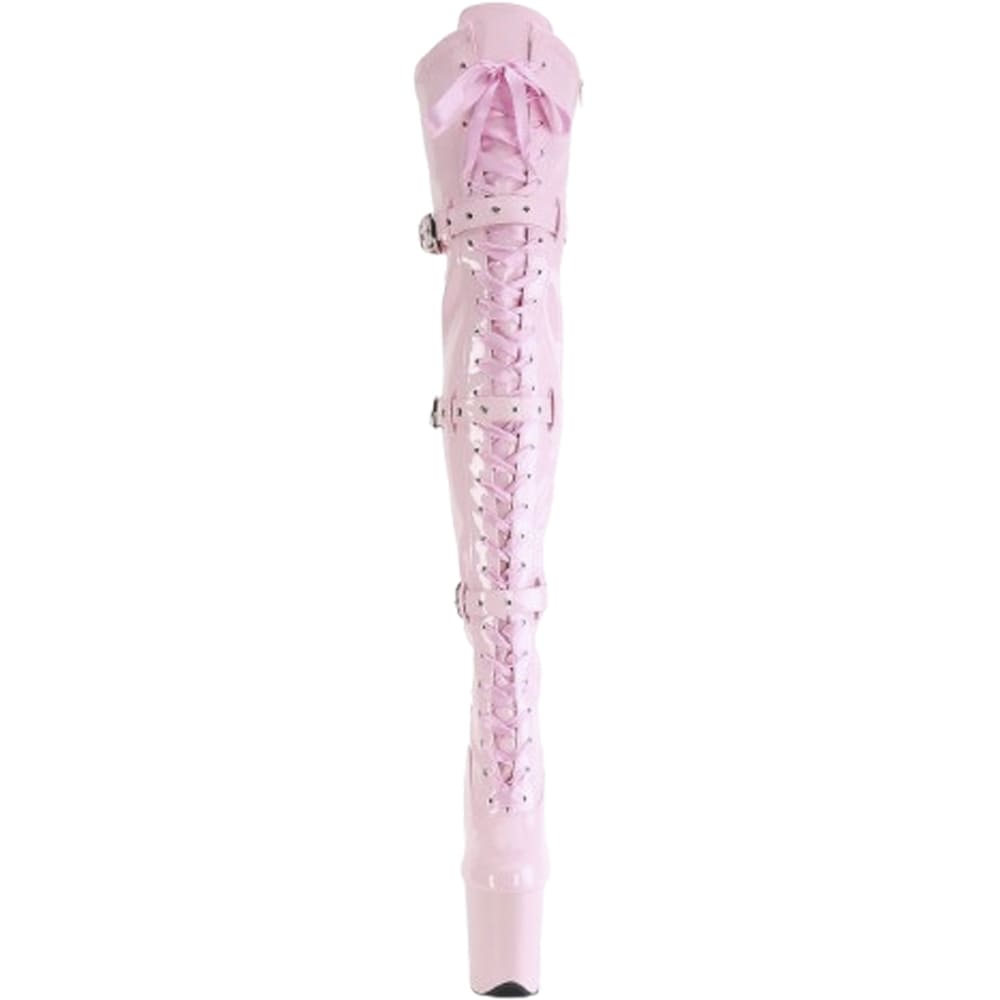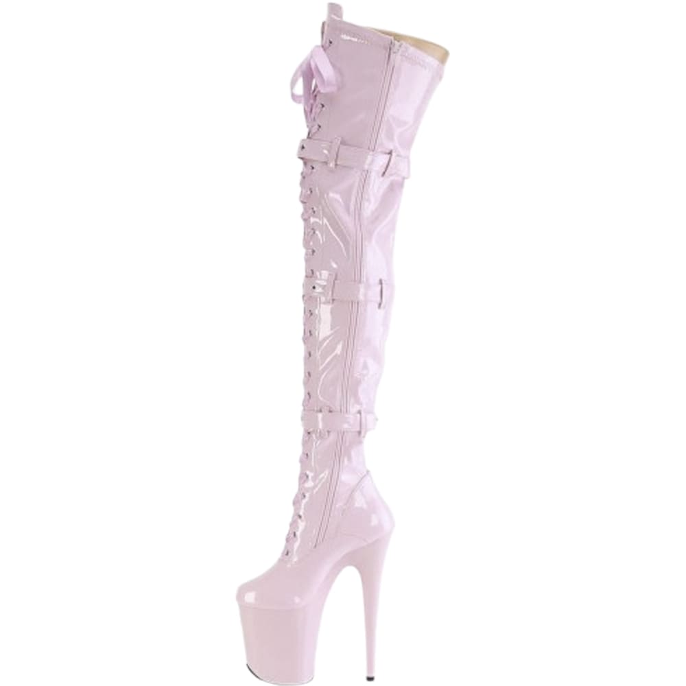Pleaser Flamingo-3028 – Pink Patent Thigh-High Boots (20 cm Heel)