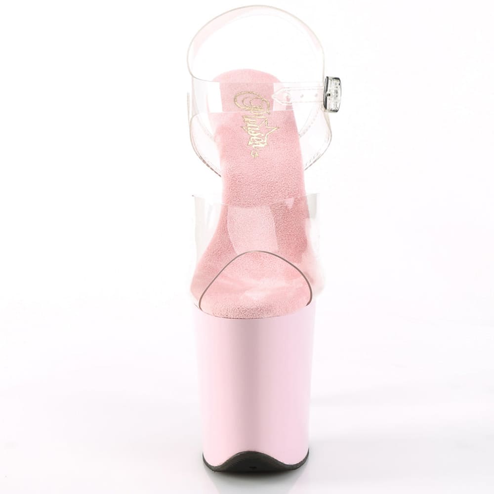 Pleaser Flamingo-808 – Clear/Pink High-Platform Sandals (20.3 cm Heel)
